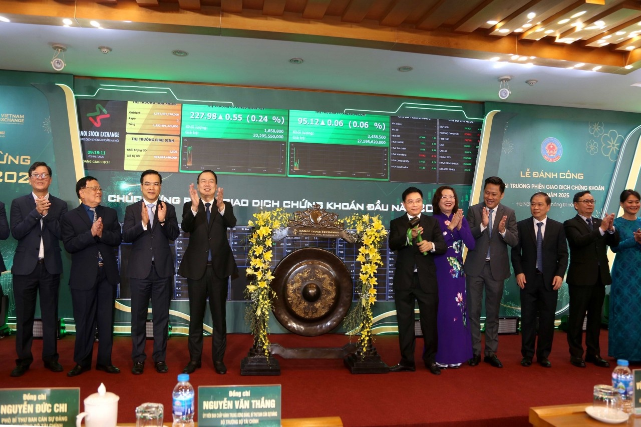 | Bộ trưởng Bộ Tài chính Nguyễn Văn Thắng đánh cồng khai trương phiên giao dịch chứng khoán đầu tiên của năm 2025 |