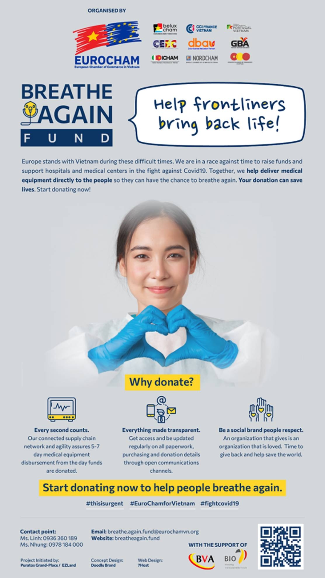 Sáng kiến này bắt nguồn từ ông Gricha Safarian, nhà sáng lập công ty Puratos Grand-Place Việt Nam. EuroCham sẽ là đơn vị điều phối, quản lý chiến dịch, tận dụng mạng lưới thành viên quy mô lớn và đa dạng nhằm đảm bảo quy mô gây quỹ lớn nhất có thể. Các công ty hoặc cá nhân có nhu cầu đóng góp cho chiến dịch có thể liên hệ với EuroCham qua địa chỉ: breathe.again.fund@eurochamvn.org