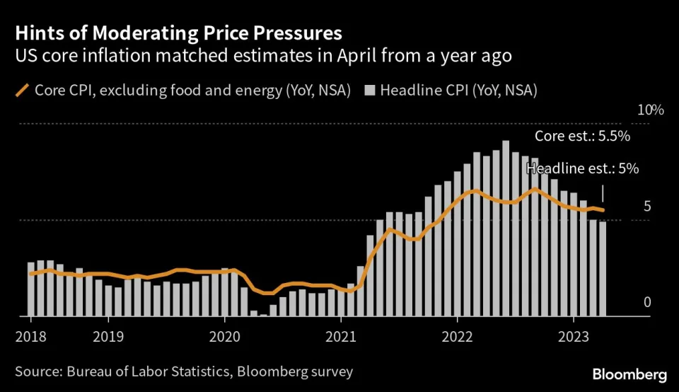Chỉ số giá tiêu dùng (CPI) tháng Tư của Mỹ đã tăng 4,9% so với cùng kỳ năm trước, lần đầu tiên xuống dưới 5% trong khoảng hai năm trở lại đây, một báo cáo của Cục Thống kê Lao động cho biết hôm thứ Tư. Loại trừ lương thực và năng lượng, chỉ số giá tiêu dùng lõi cũng hạ nhiệt nhẹ.
