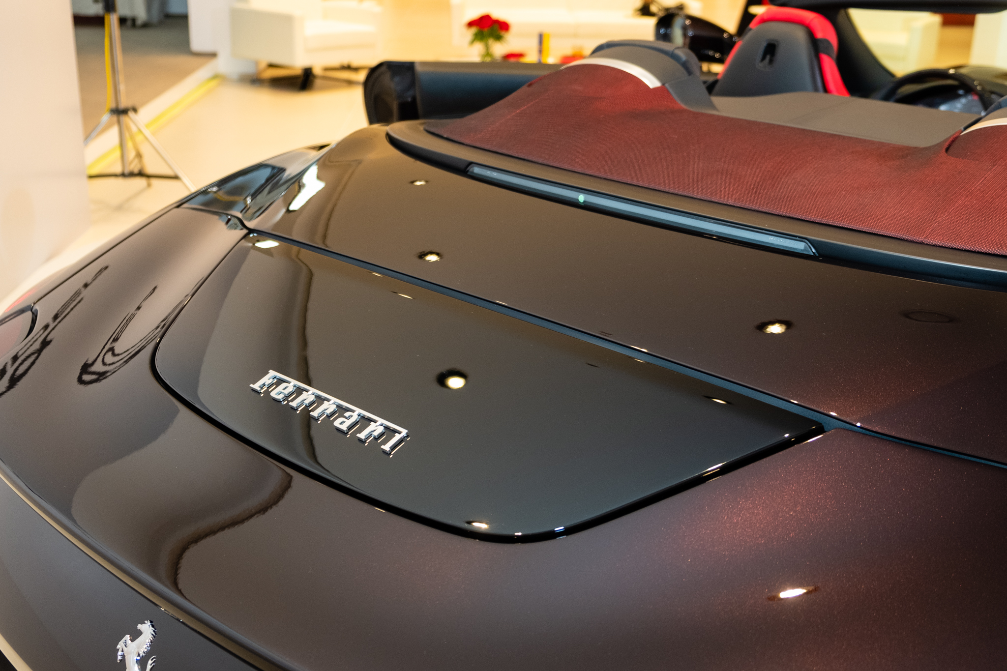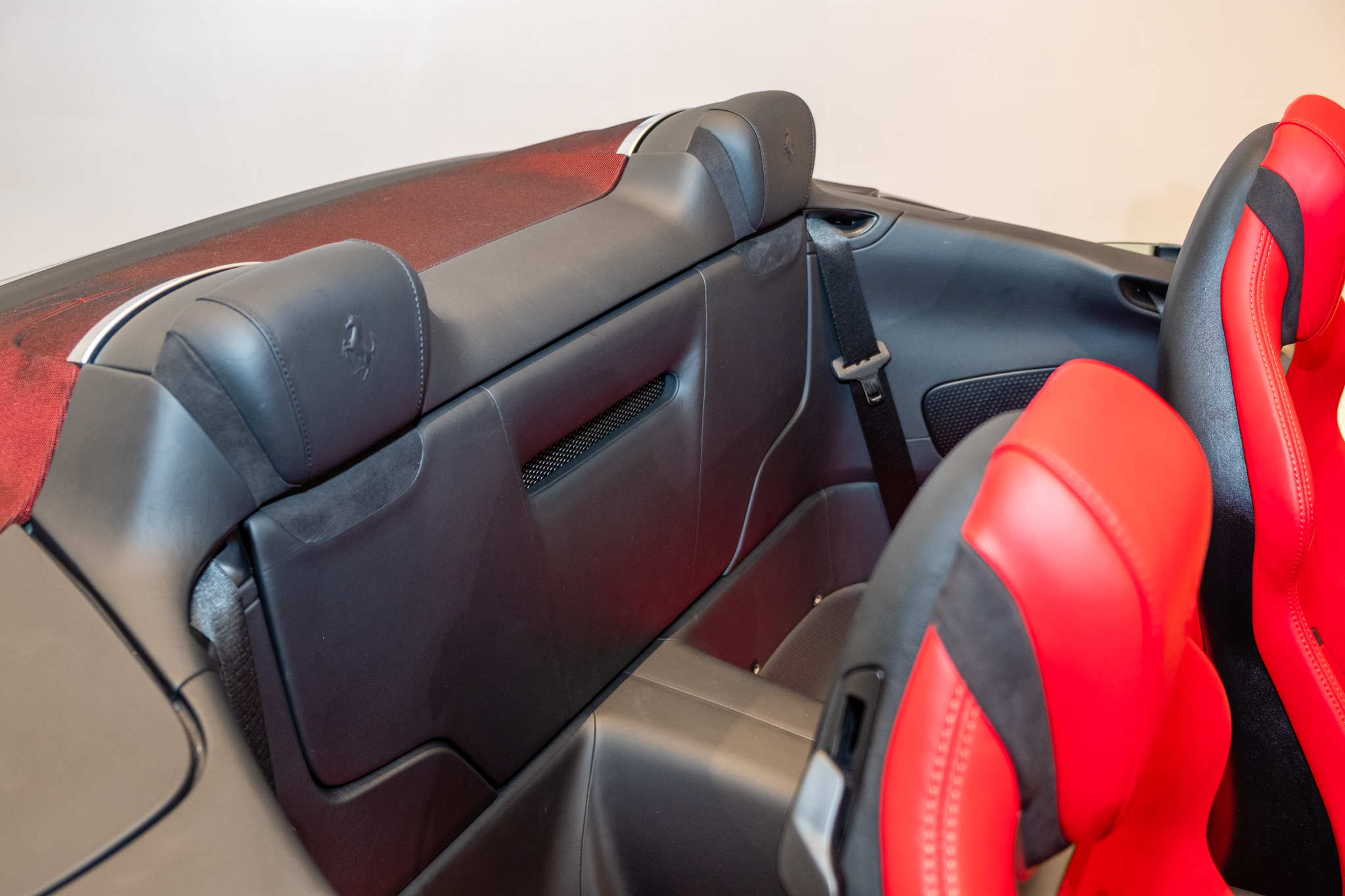 Ferrari khắc phục điều này bằng cách trang bị một tấm hướng gió đã được cấp bằng sáng chế ở tựa lưng hàng ghế sau. Khi không có người ngồi sau, người lái có thể kích hoạt cánh gió này bằng nút bấm trên bảng điều khiển trung tâm. Các lò xo khí nén dùng để đóng mở tấm hướng gió được thiết kế và phát triển một cách tối ưu nhằm mang lại khả năng vận hành trơn tru trong mọi điều kiện. Tấm hướng gió có thể mở lên ở vận tốc lên tới 170 km/h.