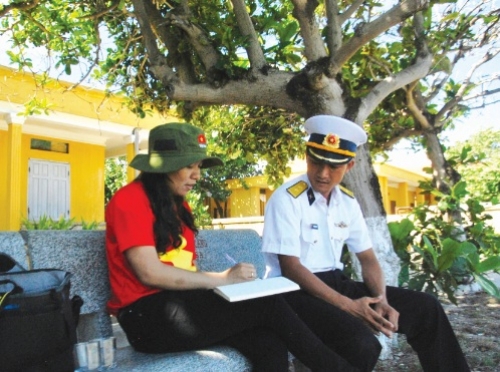 | Nhà báo Nguyễn Huyền tác nghiệp tại Trường Sa |