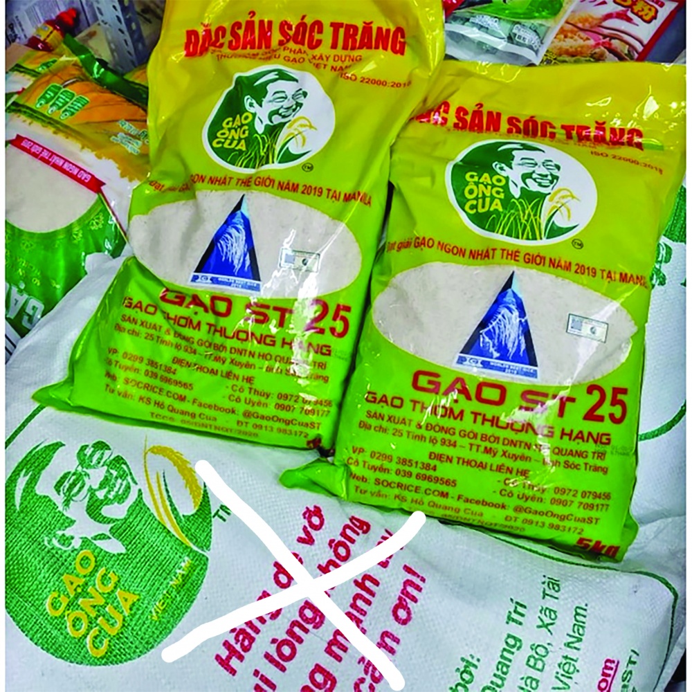 Tại thời điểm kiểm tra có 160 bao gạo ST25 giả mạo nhãn hiệu “Gạo Ông Cua” đã được đóng thành phẩm để sẵn sàng vận chuyển đến tay người tiêu dùng; cùng với đó là hàng trăm vỏ bao bì nhãn hiệu “Gạo Ông Cua” chưa sử dụng và hàng loạt các loại máy móc như máy hàn nhiệt, máy khâu, cân điện tử, chỉ dù trắng phục vụ cho hoạt động đóng gói gạo thành phẩm. Vụ việc được cơ quan chức năng phát hiện nhờ theo dõi thông tin trên các nền tảng thương mại điện tử, cụ thể đó là tài khoản Shopee “Đại lý Gạo Hồng Anh” đăng bán sản phẩm “Gạo Ông Cua” có giá rẻ hơn nhiều so với giá sản phẩm cùng loại được giới thiệu trên website gaoongcua.com (website chính thức của doanh nghiệp tư nhân Hồ Quang Trí).