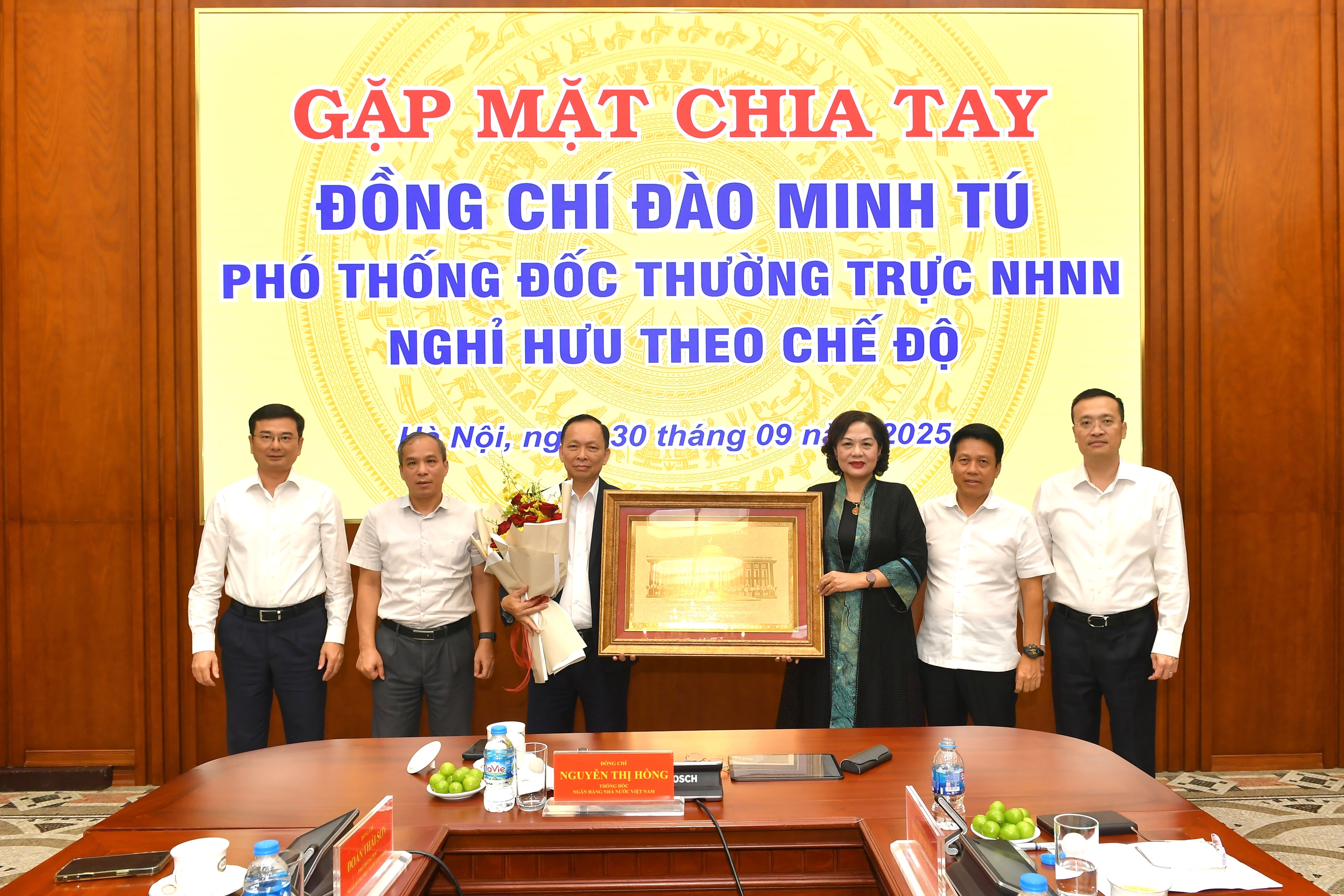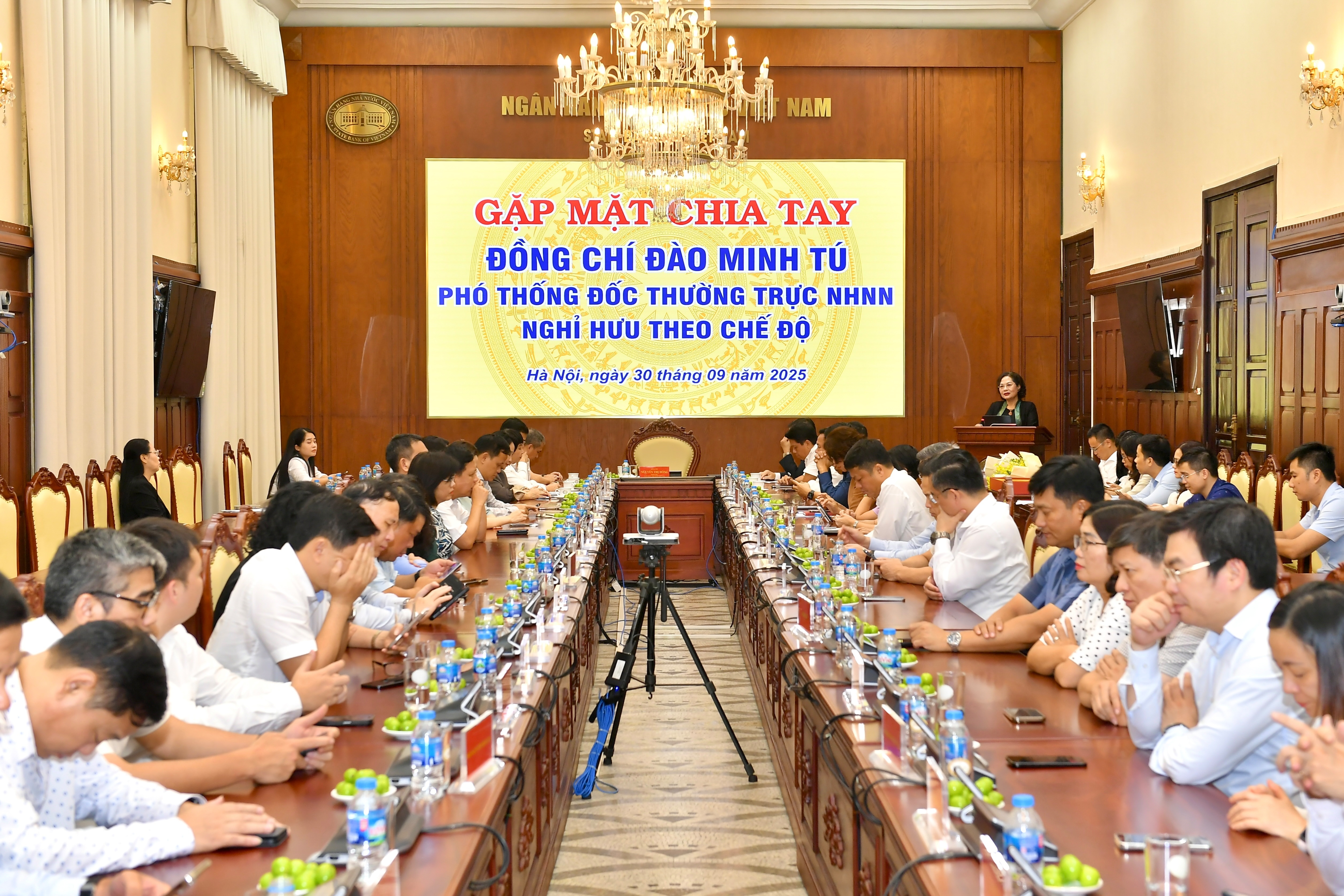 Phát biểu tại buổi gặp mặt chia tay, thay mặt Ban Thường vụ Đảng uỷ, Ban Lãnh đạo Ngân hàng Nhà nước, Thống đốc NHNN Nguyễn Thị Hồng trân trọng tri ân, ghi nhận và cảm ơn sự cống hiến bền bỉ, tận tụy, trách nhiệm trong suốt 37 năm qua của Đồng chí Đào Minh Tú đối với ngành Ngân hàng.