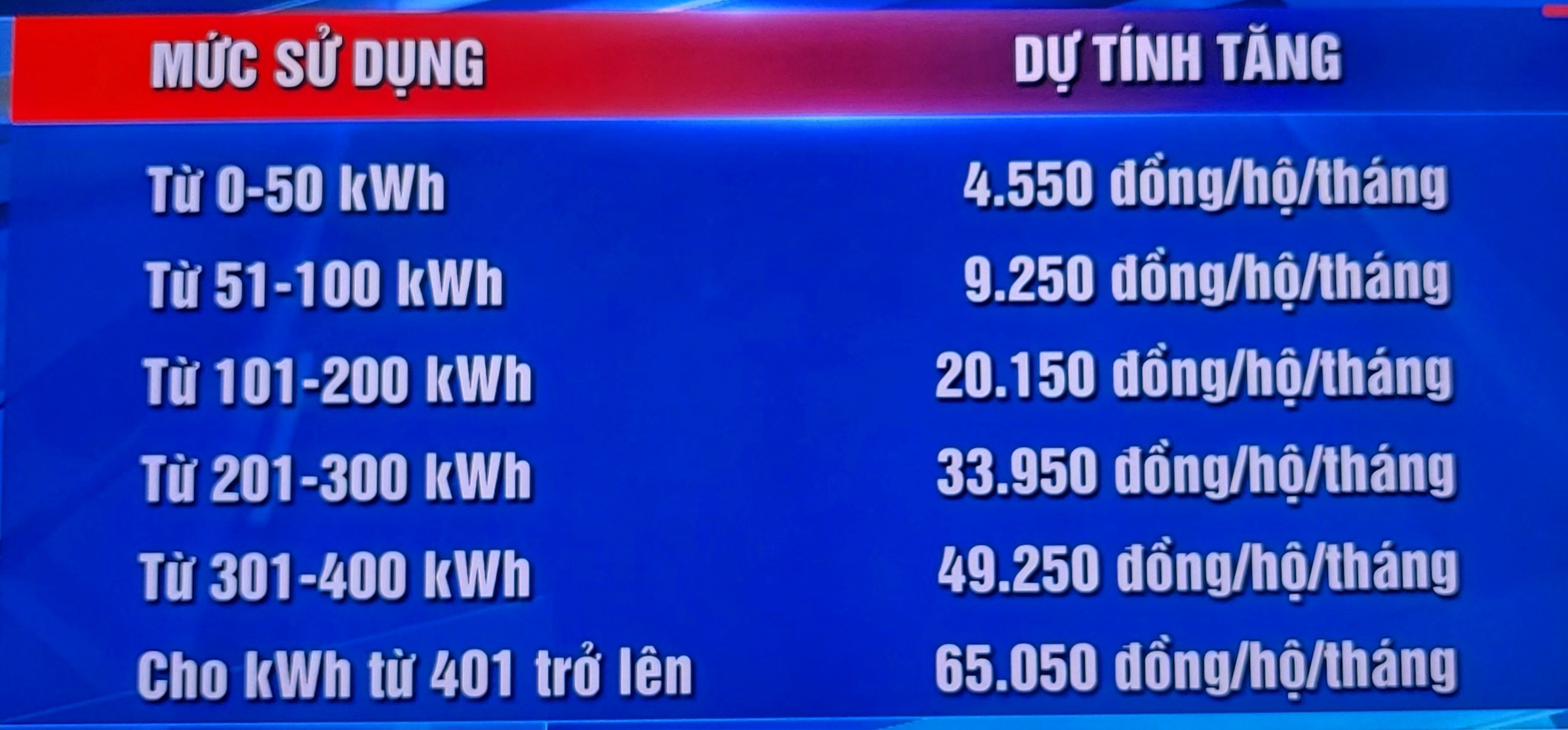 Tác động trên thực tế, đối với các hộ dân sử dụng điện sinh hoạt, mỗi hộ trong 1 tháng sẽ trả thêm từ 4.550 đồng đến hơn 65.050 đồng, tùy theo mức sử dụng.
