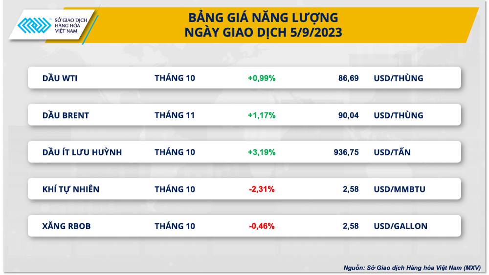 Kết thúc ngày giao dịch 5/9, giá dầu WTI ghi nhận phiên tăng thứ 9 liên tiếp, sau khi tăng gần 1% và đóng cửa với mức giá 86,69 USD/thùng. Đây là mức cao nhất kể từ giữa tháng 11/2022. Dầu Brent chốt phiên trên 90 USD/thùng, tăng 1,17% so với phiên trước đó và là mức cao nhất trong vòng gần 9 tháng.