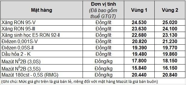 Với các mặt hàng dầu, dầu diesel giảm 752 đồng, xuống mức 19.397 đồng/lít; dầu hỏa giảm 259 đồng, xuống mức 19.480 đồng/lít; dầu mazut tăng 649 đồng, lên mức 15.843 đồng/kg.