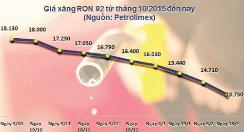 | Yêu cầu giảm tiếp giá xăng gần 1.000 đồng/lít từ 15 giờ chiều nay (18/2) | |
