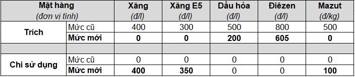 Cùng với điều chỉnh giá, liên Bộ Công Thương - Tài chính tiếp tục không chi từ Quỹ bình ổn. Về trích lập vào Quỹ bình ổn, liên Bộ không trích với mặt hàng xăng và dầu mazut. Còn dầu diesel và dầu hoả có mức trích lần lượt là 605 đồng/lít và 200 đồng/lít.