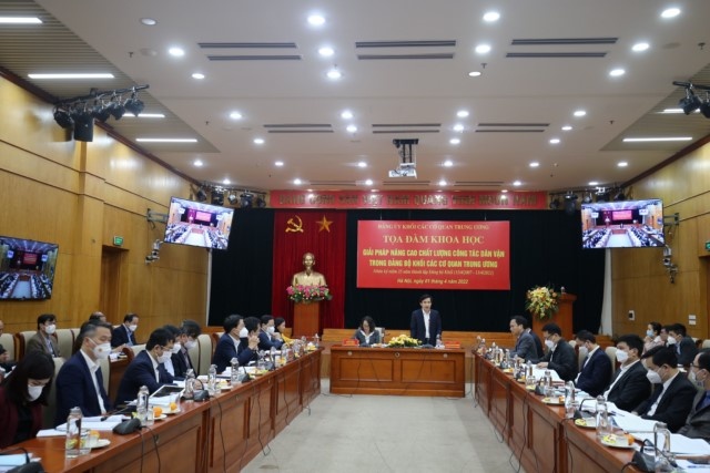 Báo cáo đề dẫn Tọa đàm khoa học “Giải pháp nâng cao chất lượng công tác dân vận trong Đảng bộ Khối các cơ quan Trung ương”, đồng chí Nguyễn Quang Trường, Phó Bí thư Đảng ủy Khối cho biết, công tác dân vận của Đảng bộ Khối các cơ quan Trung ương có nhiều điểm khác biệt so với công tác dân vận của các tỉnh, thành ủy; Đảng ủy Khối cơ quan Trung ương không có chính quyền cùng cấp, không gắn với địa bàn dân cư, đặc biệt là không có ban dân vận theo ngành dọc. Do đó, công tác dân vận ở Đảng bộ Khối các cơ quan Trung ương có hai đích hướng tới: Một là, tổ chức đảng có trách nhiệm lãnh đạo, phối hợp lãnh đạo xây dựng và thực hiện có hiệu quả nhiệm vụ chính trị, nâng cao đời sống, vật chất, tinh thần của cán bộ, công chức, viên chức, người lao động tại cơ quan, đơn vị mình; phát huy quyền làm chủ của cán bộ, công chức, viên chức, người lao động thông qua thực hiện dân chủ ở cơ sở, thực hiện công bằng xã hội, chống quan liêu, tham nhũng, lãng phí. Hai là, thực hiện công tác dân vận của ngành trên phạm vi cả nước. Vì vậy, thực hiện hiệu quả công tác dân vận trong Đảng bộ Khối không chỉ tác động tích cực đến kết quả công tác ở các cơ quan Trung ương mà còn góp phần quan trọng vào việc ổn định xã hội, củng cố niềm tin của nhân dân vào sự lãnh đạo của Đảng và Nhà nước ta.