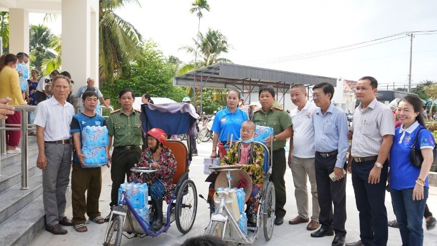 Theo đó, Công ty Tân Hiệp Phát phối hợp cùng báo CATP, Hội Phụ nữ Công an TP. Hồ Chí Minh, Công an Tiền Giang, Công an Bến Tre, Sở LĐTBXH Bến Tre trao tặng gần 200.000 sản phẩm nước tinh khiết đóng chai và 620 khối nước ngọt cho người dân các xã của tỉnh Bến Tre và Tiền Giang.
