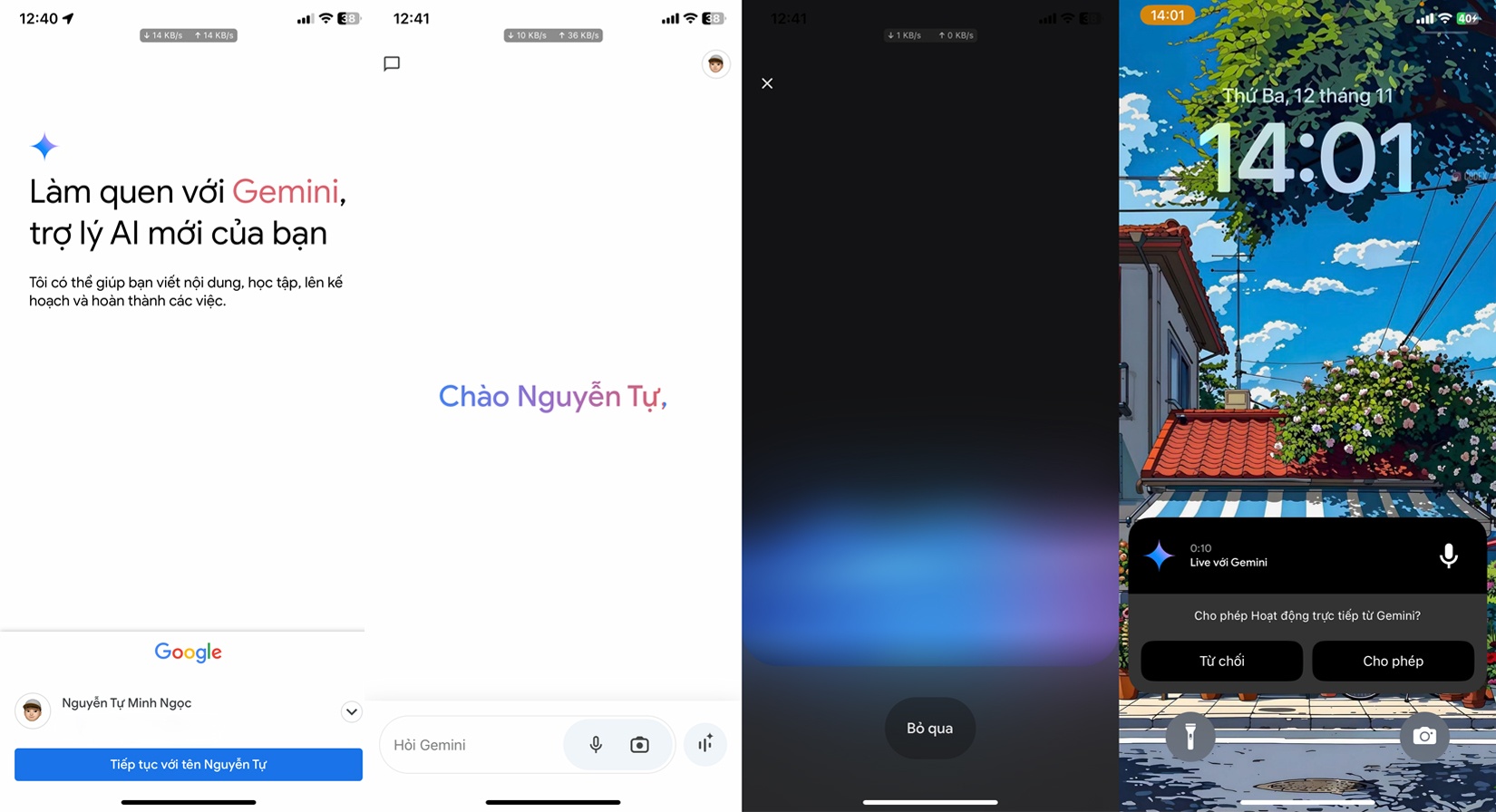 Qua trải nghiệm thực tế, ứng dụng Gemini trên iPhone có giao diện tương đồng các máy Android, bao gồm cả thanh nhập liệu, tính năng Gemini Live hay giao diện cài đặt. Đáng chú ý, khi sử dụng Gemini Live, người dùng cũng có thể trò chuyện ngay cả khi thoát ra khỏi ứng dụng hoặc tắt màn hình. Để làm được điều này, họ sẽ cần cho phép Gemini Hoạt động trực tiếp (hay còn gọi là Live Activities).