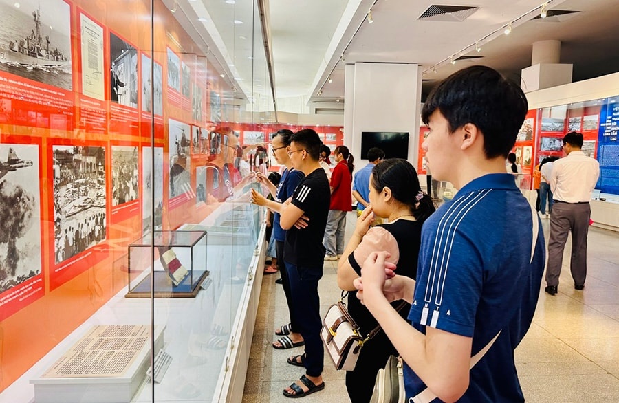 | Du khách tham quan trưng bày “Đất nước trọn niềm vui” tại Bảo tàng Hồ Chí Minh |