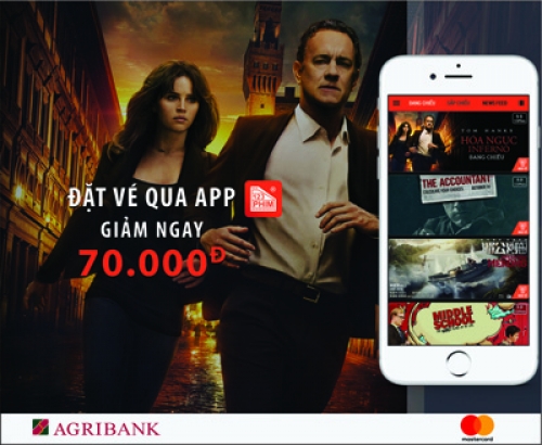 Khi khách hàng đặt vé xem phim qua ứng dụng 123Phim với giá trị đơn hàng từ 150.000 đồng trở lên và thanh toán bằng thẻ Agribank MasterCard từ nay đến hết ngày 14/11/2016, sẽ được giảm ngay 70.000 đồng trên tổng giá trị hóa đơn. Chương trình áp dụng với các đơn hàng mua từ 02 vé xem phim trở lên và cho 1.000 giao dịch thành công và thanh toán sớm nhất.