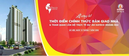Nhằm ghi dấu thời điểm trọng đại này, vào ngày 31/07/2016, chủ đầu tư Hateco sẽ tổ chức sự kiện “Lễ công bố chính thức thời điểm bàn giao nhà và tham quan căn hộ thực tế dự án Hateco Hoàng Mai”, với hai điểm nhấn chính đó là Công bố chính thức thời điểm các khách hàng chuyển về tổ ấm mới và lần đầu tiên khách hàng được mục sở thị về không gian thực tế của 31 căn hộ cũng như chất lượng bàn giao, điều mà các khách hàng hiếm thấy ở các dự án khác trên thị trường.