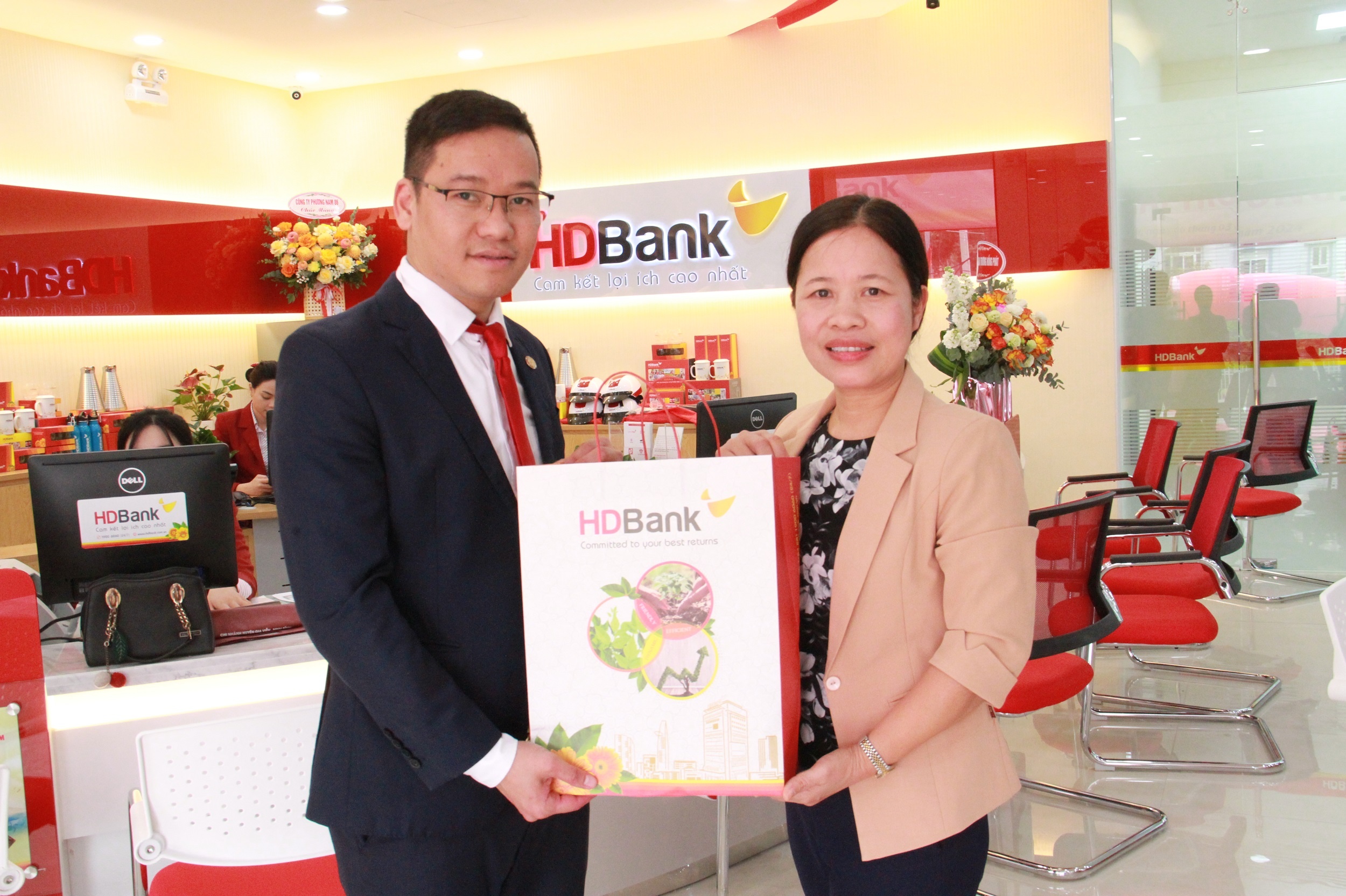| Những khách hàng đầu tiên nhận quà từ HDBank ngay trong ngày khai trương |