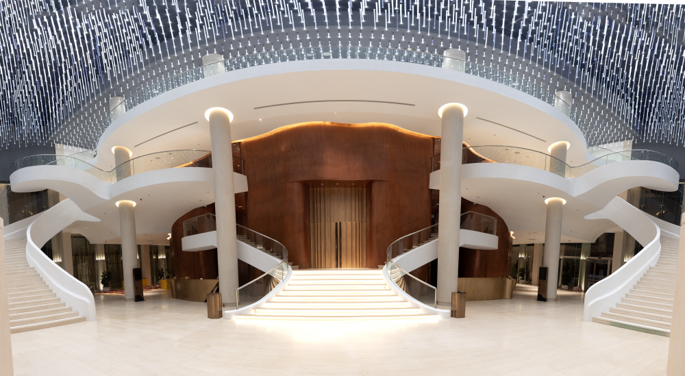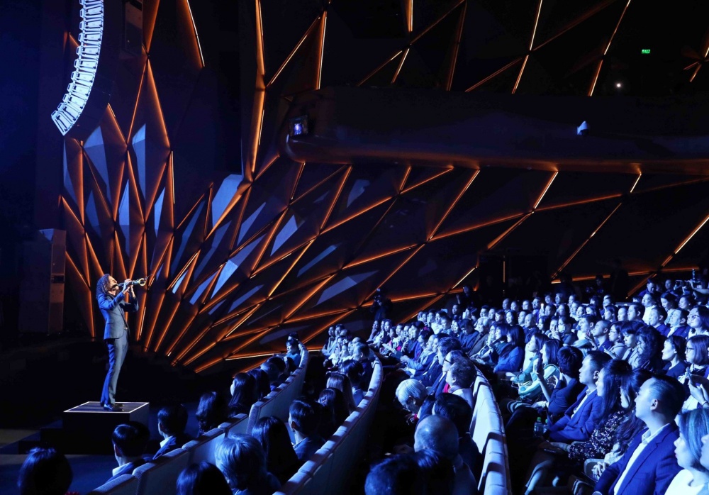 Khu vực sảnh Nhà hát được trang hoàng lộng lẫy như bầu trời đêm đầy sao, tạo hiệu ứng thị giác mạnh mẽ ngay khi bước vào, được đánh giá là phù hợp với những sự kiện đẳng cấp mang tầm vóc quốc tế như Lễ trao giải VinFuture.