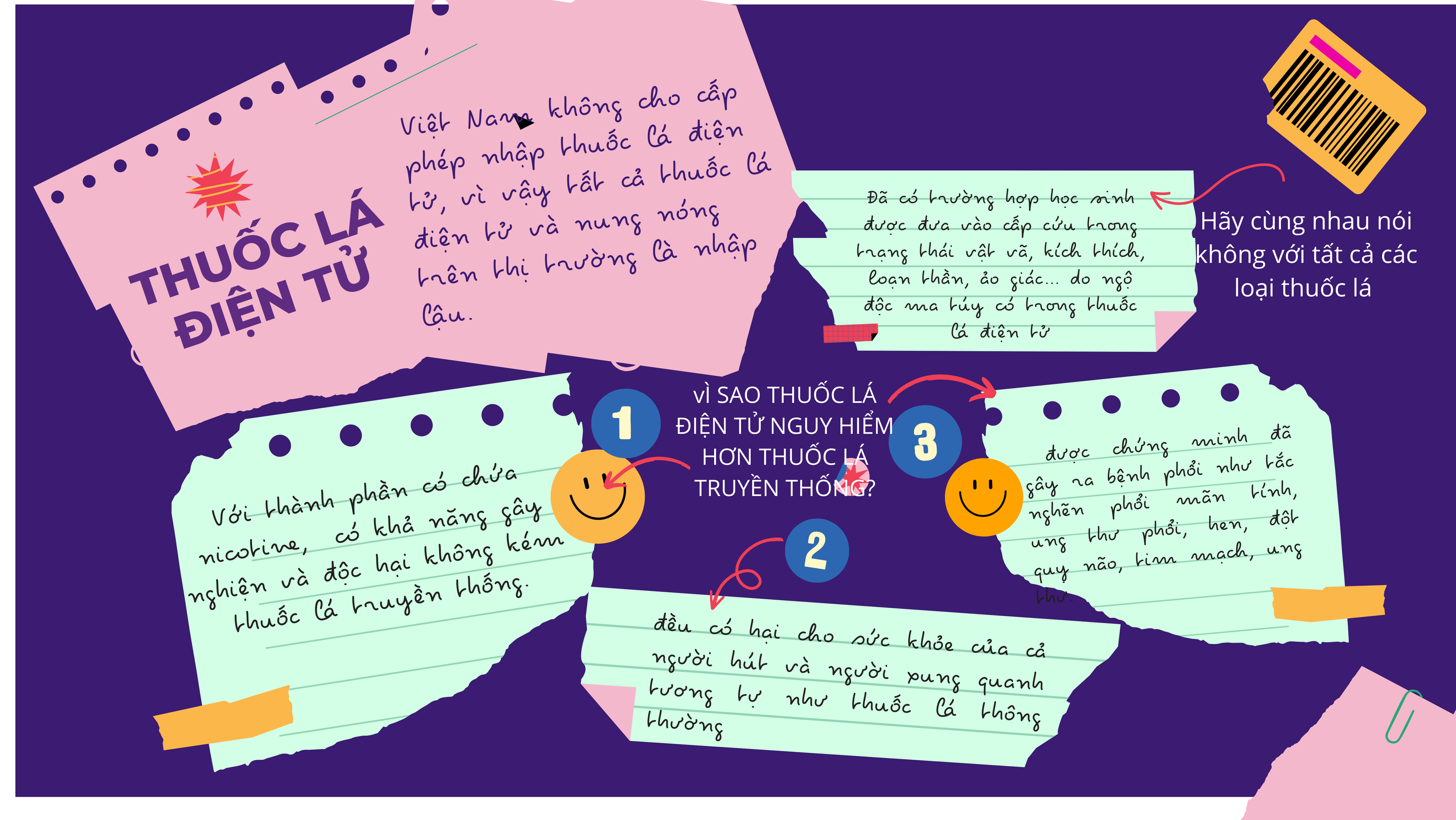 Nguy hiểm của thuốc lá điện tử còn đến từ việc, đa phần thuốc lá điện tử đều là hàng nhập lậu, xách tay… vì Việt Nam không cho cấp phép nhập thuốc lá điện tử. Các sản phẩm này thu hút giới trẻ thông qua hương vị hấp dẫn, thiết kế sản phẩm bắt mắt, thời trang, mang đậm phong cách công nghệ, được quảng bá trên mạng xã hội của giới trẻ bằng những người nổi tiếng và giữ khách hàng bằng các sản phẩm có hàm lượng nicotine cao. Đây chính là nguyên nhân dẫn đến hàng loạt trường hợp ngộ độc thuốc lá điện tử do có ma túy trong lọ tinh chất.