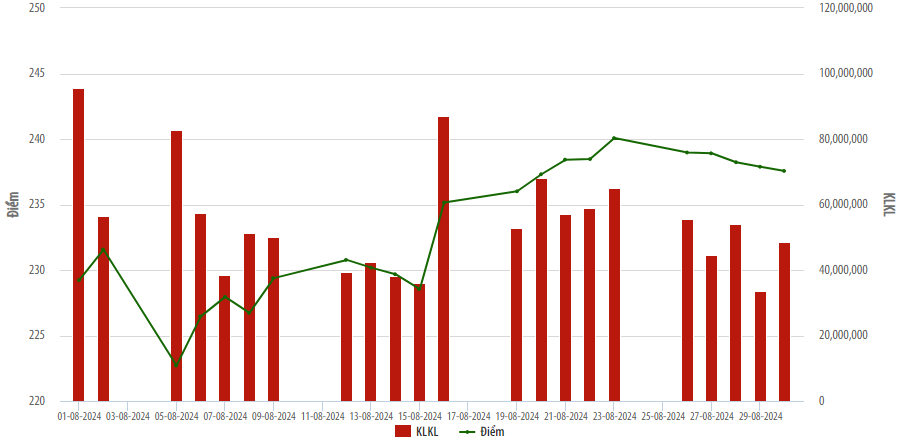 Trong tháng 8/2024, top 3 cổ phiếu có thanh khoản tốt nhất thị trường tiếp tục là SHS, CEO và MBS. Trong đó, SHS có KLGD tăng 23,7% so với tháng trước, đạt KLGD 229 triệu cổ phiếu, lớn nhất tại HNX với chiếm tỷ trọng 16,62% toàn thị trường. Tiếp theo là CEO có KLGD tăng 46%, đạt 137 triệu cổ phiếu, chiếm tỷ trọng 9,96% thị trường. MBS có KLGD giảm 11,2% đạt 73,5 triệu cổ phiếu, chiếm tỷ trọng 5,32%. Kể từ đầu năm, 03 cổ phiếu này luôn nằm trong danh sách dẫn đầu về thanh khoản hàng tháng tại thị trường cổ phiếu niêm yết tại HNX