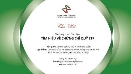 Từ ngày 24/7 đến tháng 12/2014, nhằm giúp các nhà đầu tư hiểu sâu hơn về c hứng chỉ quỹ ETF, Sở Giao dịch Chứng khoán Hà Nội (HNX) tổ chức Chương trình đào tạo: Tìm hiểu về chứng chỉ quỹ ETF.
