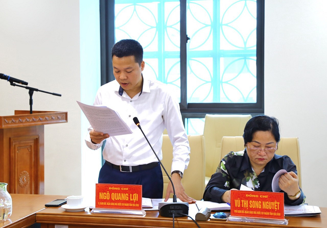 Tại buổi Khảo sát của Đoàn Đại biểu Quốc hội tỉnh, đồng chí Ngô Quang Lợi, Quyền Giám đốc Ngân hàng Nhà nước chi nhánh tỉnh Hòa Bình đã báo cáo tóm tắt việc thực hiện chính sách, pháp luật về các tổ chức tín dụng trên địa bàn tỉnh Hoà Bình.