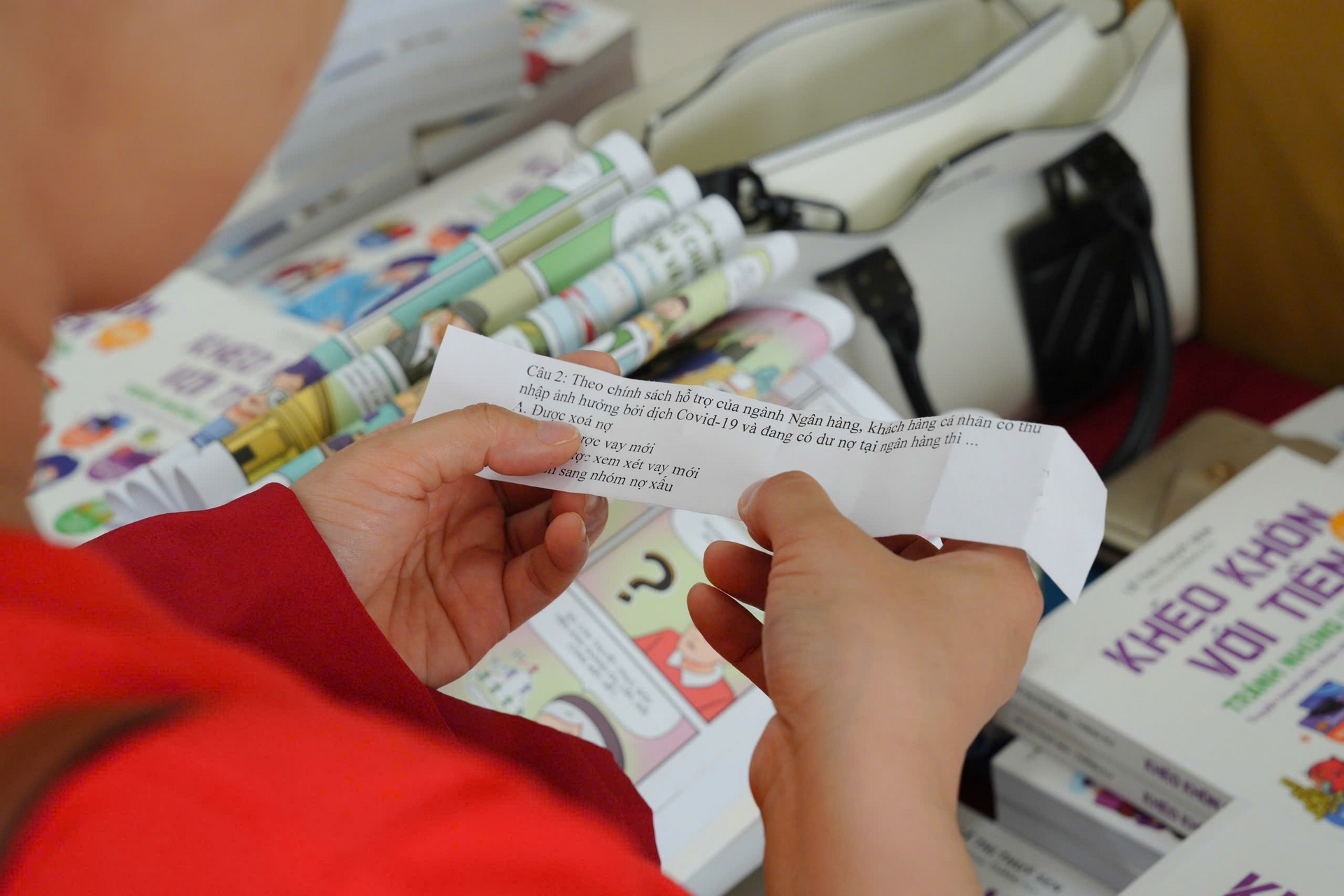 | Nhiều phụ huynh hào hứng tham gia phần thi đố vui về kiến thức tài chính |
