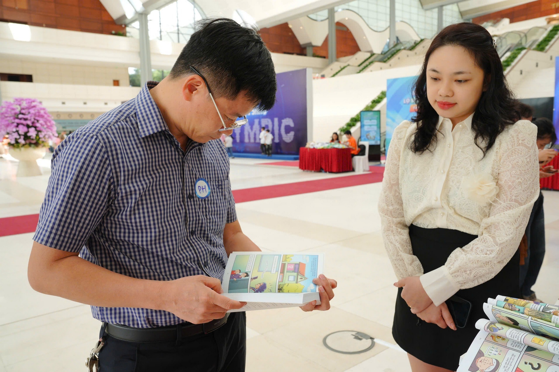 | Không gian trưng bày truyện tranh là điểm dừng chân được nhiều thầy cô giáo, phụ huynh và học sinh yêu thích tại sự kiện |