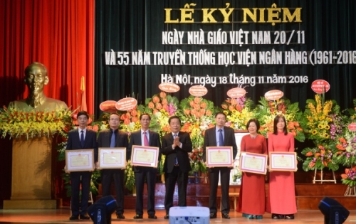 Hai tập thể và 15 cá nhân xuất sắc của Học viện nhận Bằng khen của Thống đốc NHNN Việt Nam. Bộ trưởng Bộ Giáo dục và Đào tạo cũng tặng Bằng khen cho Học viện Ngân hàng đã có thành tích xuất sắc trong phong trào thi đua thực hiện nhiệm vụ năm học 2015 - 2016; một tập thể và 04 cá nhân có nhiều đóng góp trong công tác xây dựng và phát triển Học viện.