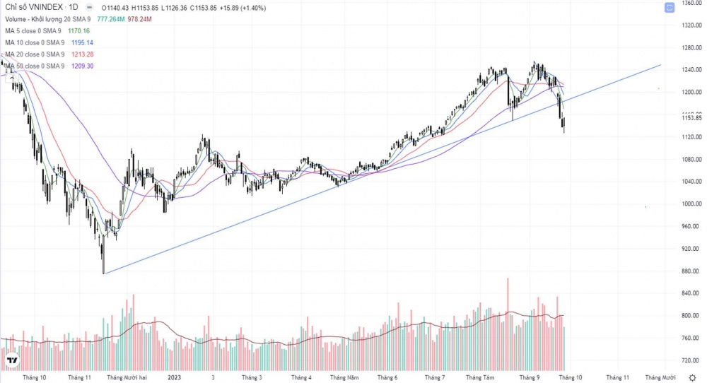 Về kỹ thuật, bà Trang cho rằng VN-Index hồi phục mạnh sau khi tiếp cận vùng hỗ trợ 1.125 điểm cho thấy nhóm nhà đầu tư đứng ngoài chờ cơ hội, bao gồm cả khối ngoại, vẫn sẵn sàng cho sự hồi phục của thị trường. Điểm số nhờ vậy có thể hồi phục tiếp tới vùng 1.170 điểm trong phiên tới. Tuy nhiên, thanh khoản sụt giảm khiến việc thị trường quay trở lại uptrend là không chắc chắn.