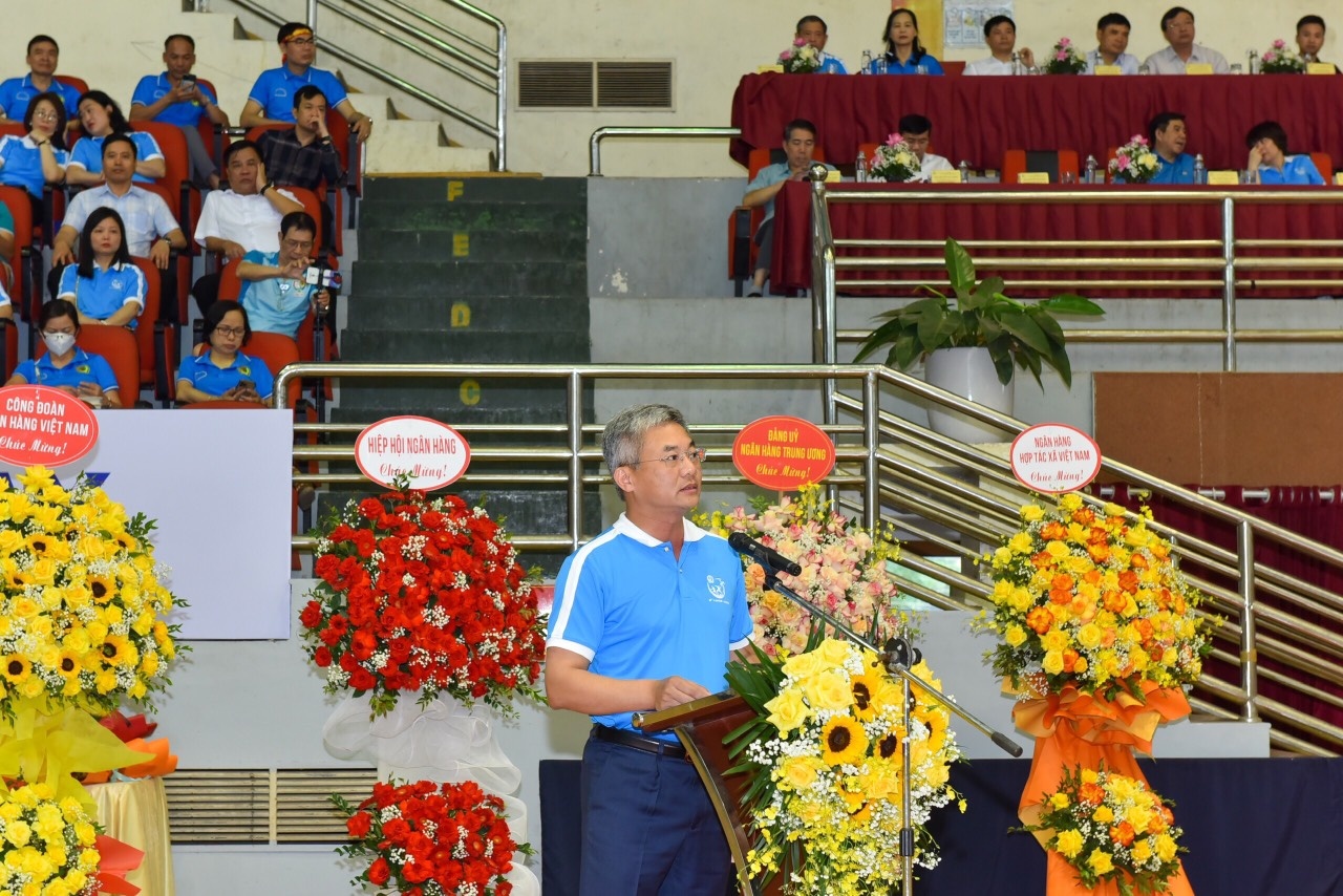 Ông Nguyễn Quốc Cường - Chủ tịch Hiệp hội QTDND Việt Nam, Chủ tịch HĐQT Co-opBank phát biểu khai mạc Hội thao |