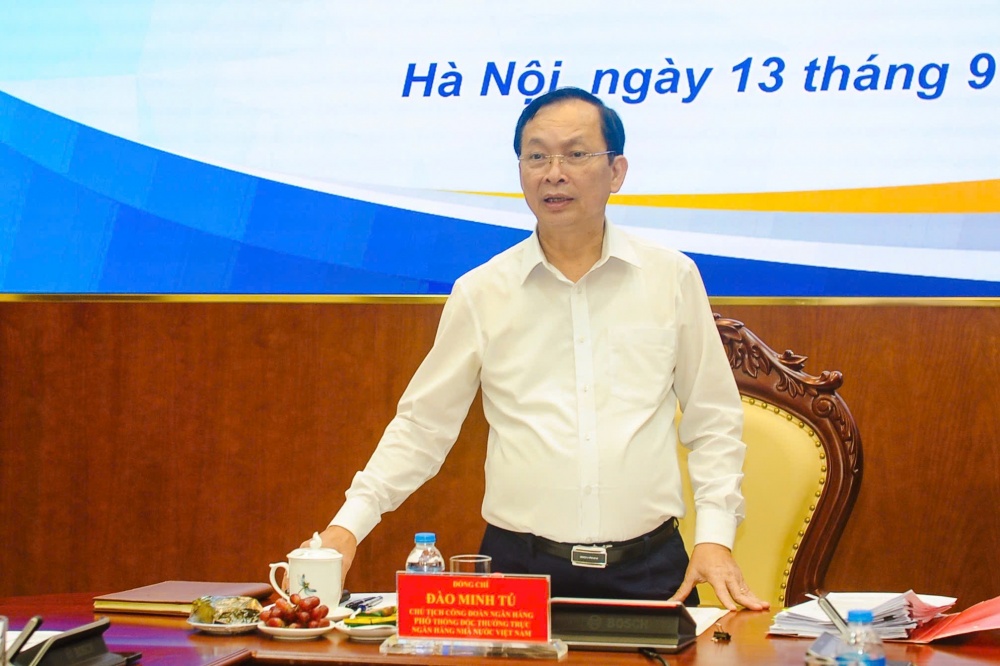 | Phó thống đốc thường trực NHNN, Chủ tịch Công đoàn NHVN, Trưởng ban Chỉ đạo cuộc thi Đào Minh Tú chủ trì cuộc họp. Ảnh: Hoàng Giáp |
