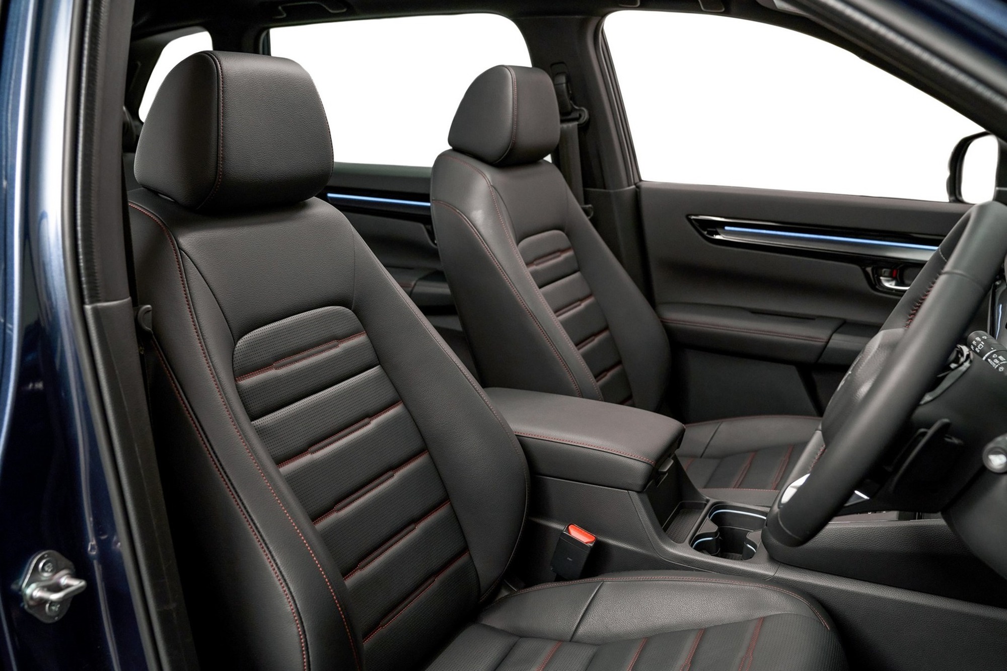 Honda CR-V 2023 tại Thái Lan có phiên bản 5 chỗ ngồi và 7 chỗ ngồi. Nội thất bên trong bọc da, điểm xuyết bằng những vị trí được ốp nhôm. Điều hòa 2 vùng tự động, có cửa gió điều hòa riêng cho hàng ghế thứ hai và thứ ba (phiên bản 7 chỗ). Ghế lái chỉnh điện 8 hướng, có nhớ vị trí, còn ghế hành khách phía trước chỉnh điện 4 hướng. Người lái có thể khởi động xe từ xa, sử dụng thẻ chìa khóa Honda Smart Key Card.