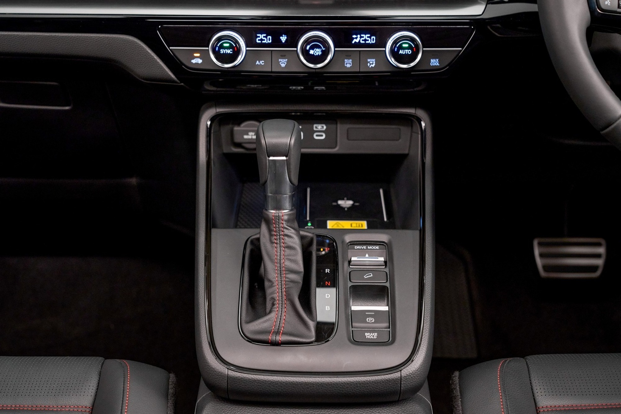 Trong khi đó, động cơ hybrid sử dụng kết hợp động cơ xăng 2.0L chu kỳ Atkinson, mô-tơ điện và pin lithium-ion, cho tổng công suất 207 mã lực và mô-men xoắn 335 Nm, kết hợp hộp số tự động E-CVT, tùy chọn dẫn động cầu trước hoặc dẫn động bốn bánh AWD. Hệ dẫn động bốn bánh AWD của Honda có tích hợp bộ điều khiển thông minh có khả năng phân bổ tới 50% sức mạnh tới bánh sau, cùng với đó là tính năng hỗ trợ kiểm soát tốc độ khi đổ đèo, điều chỉnh tốc độ trong khoảng 2-12 km/h.