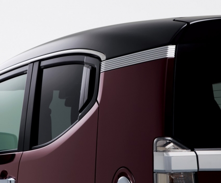 Về hình dáng, chiếc kei car này vẫn kế thừa hình “chiếc hộp” như các bậc đàn anh khác như, N-Box, N-Box +, N-One và N-WGN và được pha một chút kiểu dáng Coupe. Ngoài ra, thay vì có 5 cửa mà cửa sau dạng trượt thì chiếc Slash mới sẽ được mở ra như bình thường, phần mái được thu gọn nhỏ hơn 100mm, trong khi roofline được kéo xuống hướng về phía sau, các tay nắm cửa phía sau đã được "ẩn" đi.