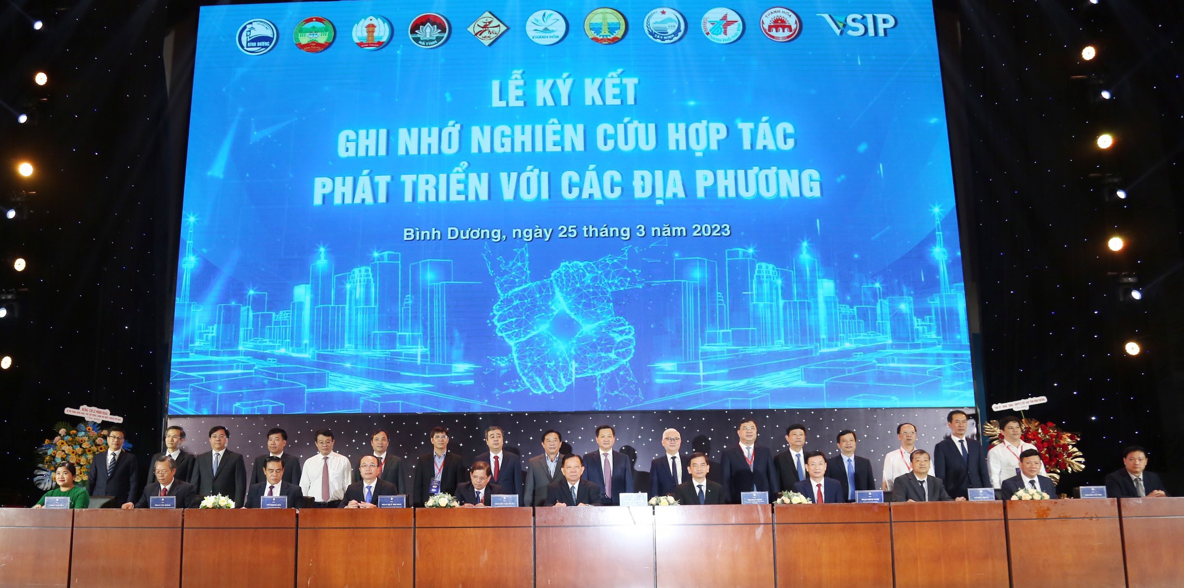 Tại chương trình Bình Dương Khởi động - Kết nối - Phát triển mới cũng đã diễn ra lễ ký kết biên bản ghi nhớ hợp tác giữa Khu Công Nghiệp Việt Nam - Singapore (VSIP Group) với đại diện lãnh đạo 9 tỉnh, thành Việt Nam.