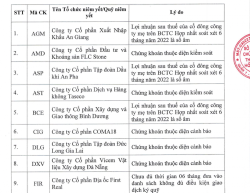 Những nguyên nhân dẫn đến việc cắt margin còn là việc doanh nghiệp có lợi nhuận của cổ đông công ty mẹ/LNST trên BCTC hợp nhất soát xét 6 tháng năm 2022 là số âm như AGM, ASP, BCE, HAS, KHP, MHC, POM, PSH, PTC, SBV, SJF... hoặc Công ty nhận được kết luận của cơ quan thuế về việc vi phạm thuế như SCS, TDW.