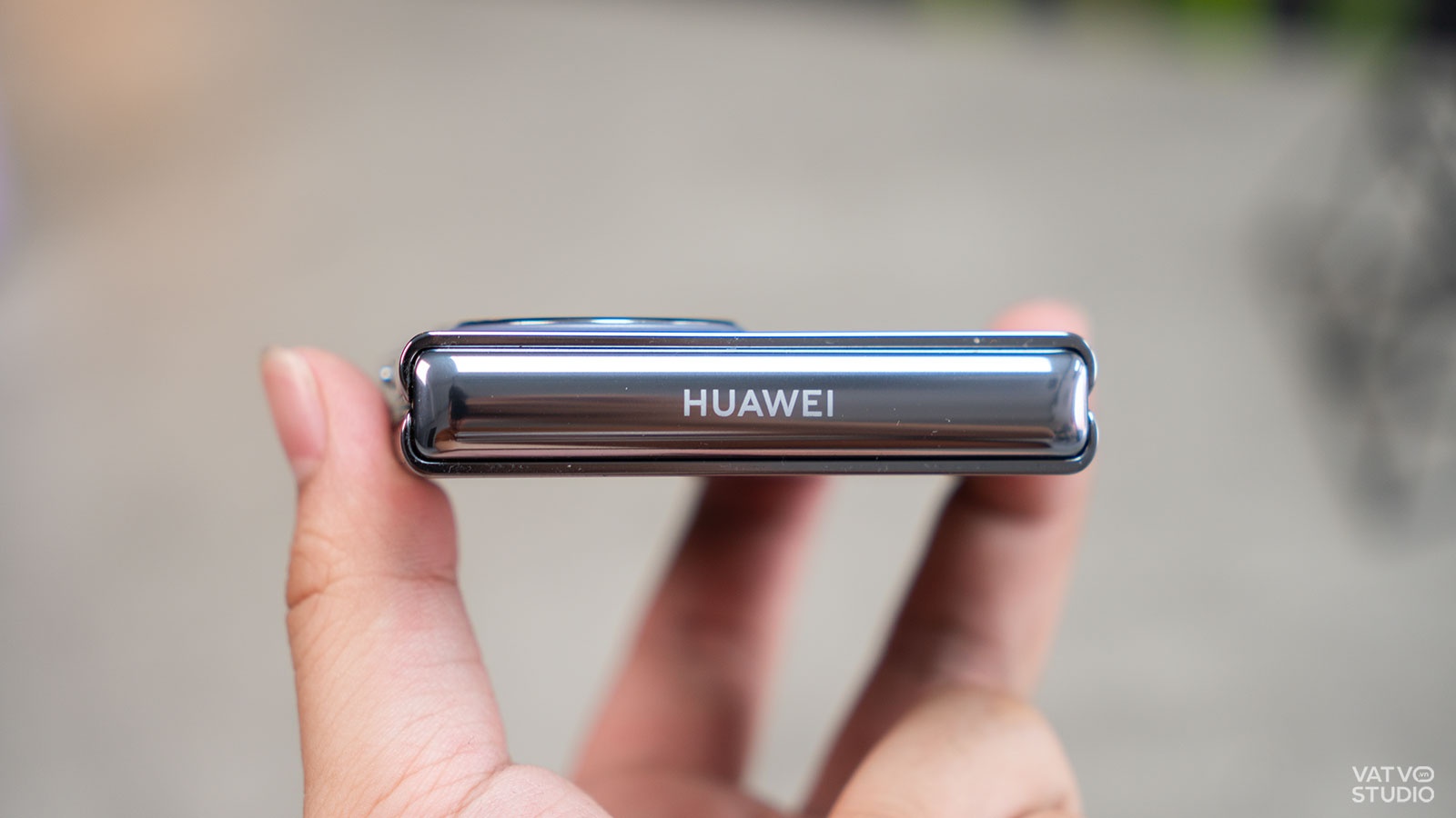 Trở lại thiết kế, bản lề trên HUAWEI Pocket 2 được tối ưu khá tốt, máy không xuất hiện khe hở khi gập máy. Tuy nhiên, nếp gập bên trong màn hình máy vẫn còn lộ khá rõ, đặc biệt khi hiển thị các dạng nội dung nền trắng.