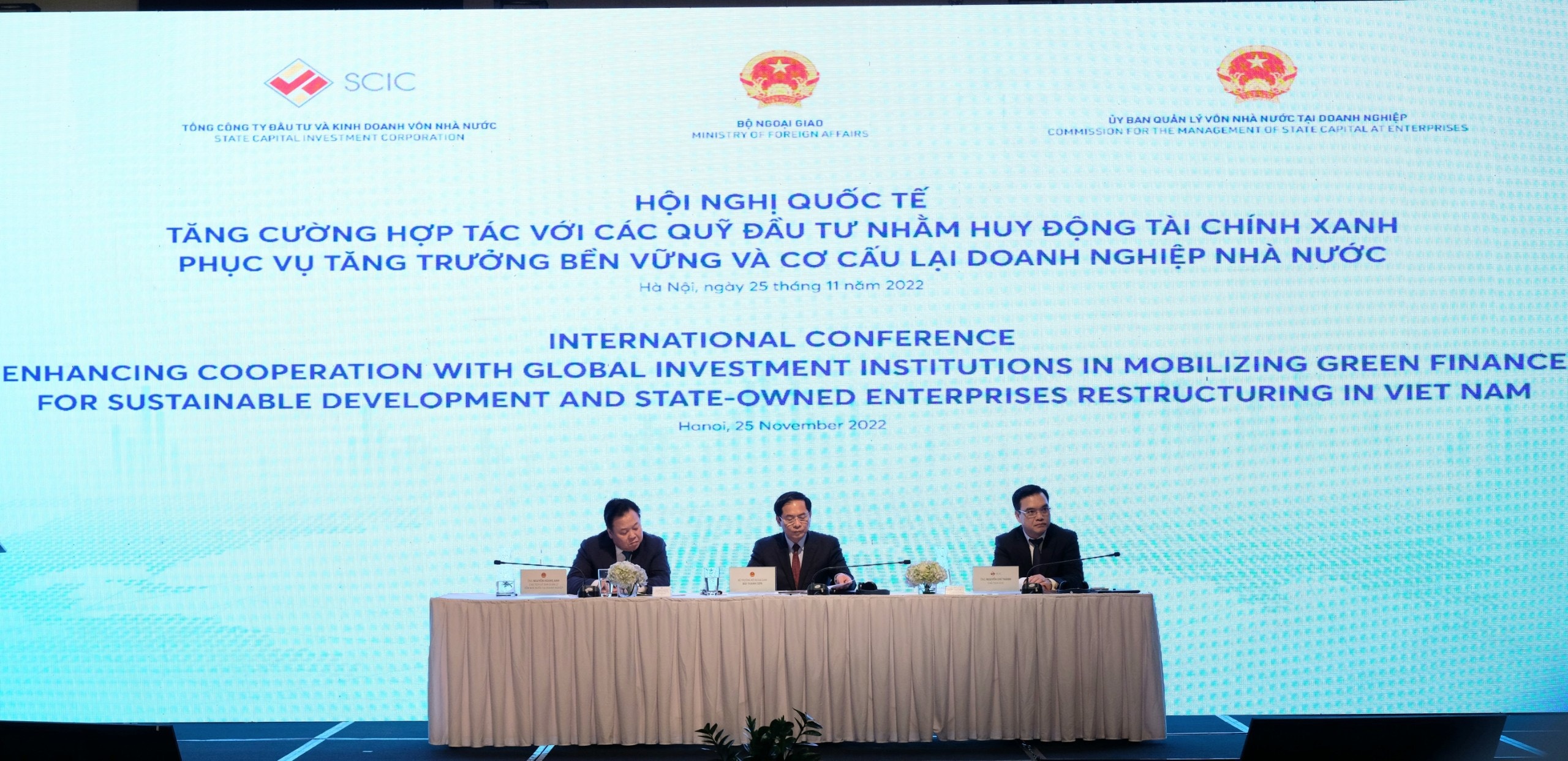 Đó là ý kiến được trao đổi tại Hội nghị “Tăng cường hợp tác với các Quỹ đầu tư nhằm thu hút tài chính xanh phục vụ tăng trưởng bền vững và cơ cấu lại doanh nghiệp nhà nước” do Bộ Ngoại giao, Ủy ban Quản lý vốn Nhà nước tại doanh nghiệp và Tổng công ty Đầu tư và kinh doanh vốn nhà nước phối hợp tổ chức chiều 25/11, tại Hà Nội.
