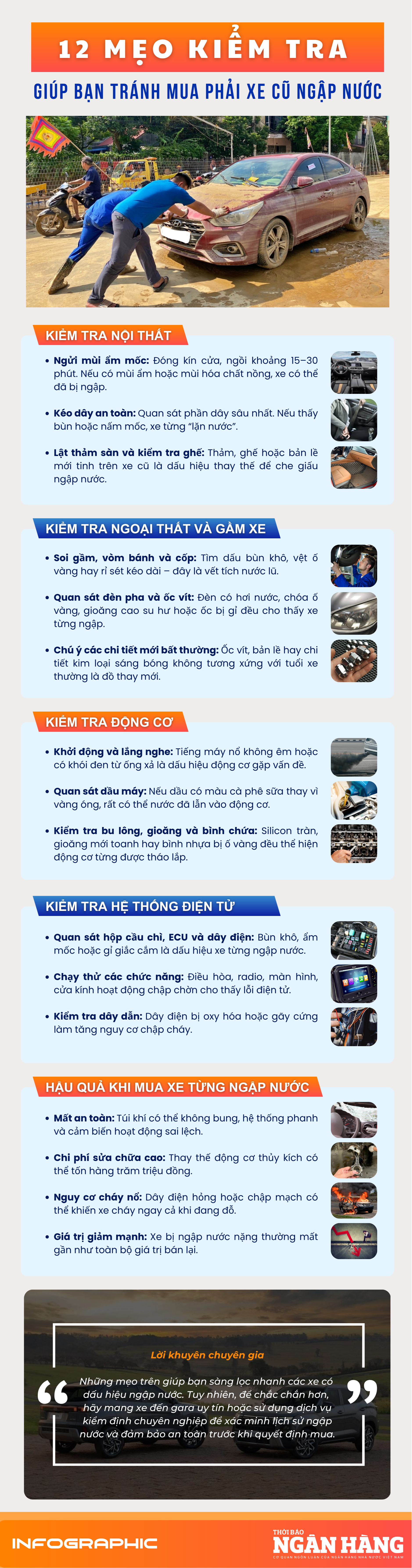 [Infographic] 12 mẹo kiểm tra giúp bạn tránh mua phải xe cũ ngập nước