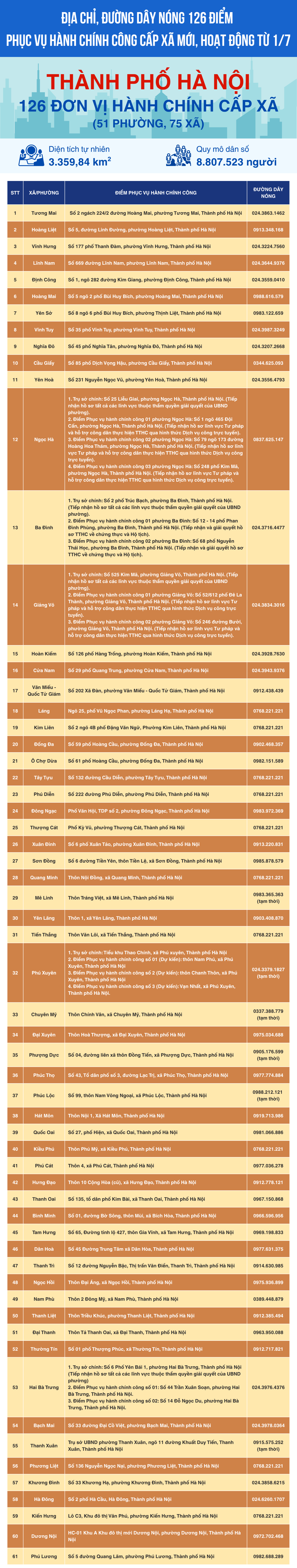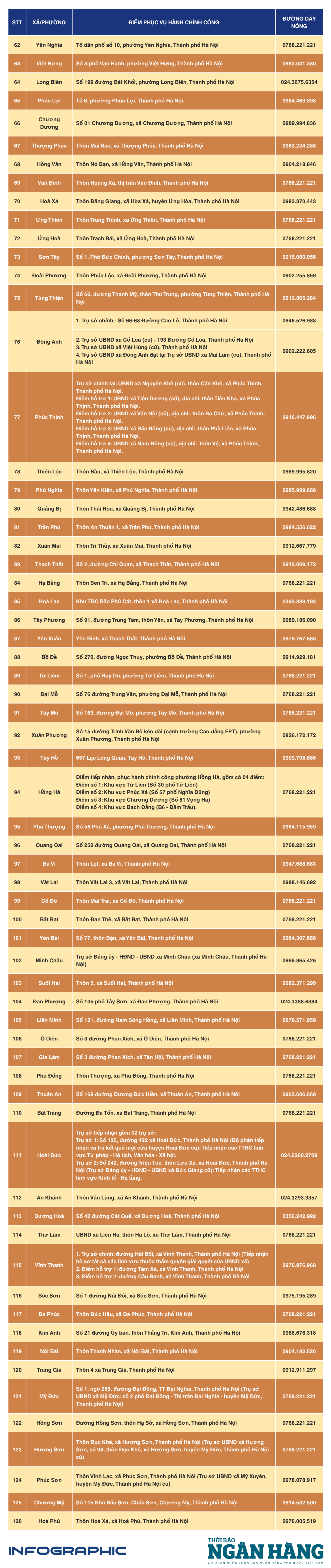 [Infographic] 126 điểm phục vụ hành chính công cấp xã, phường mới của Hà Nội