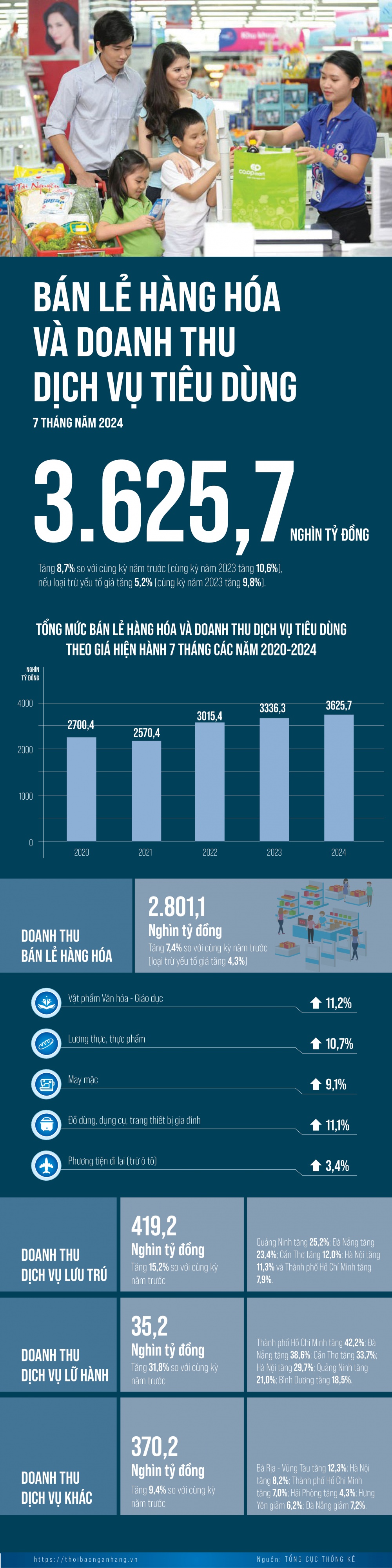 [Infographic] Bán lẻ hàng hóa 7 tháng năm 2024