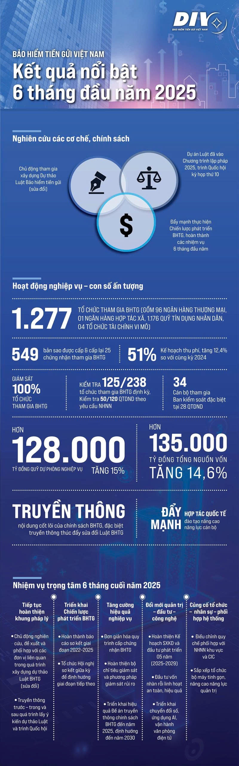 [Infographic] Bảo hiểm tiền gửi Việt Nam: Kết quả nổi bật 6 tháng đầu năm 2025