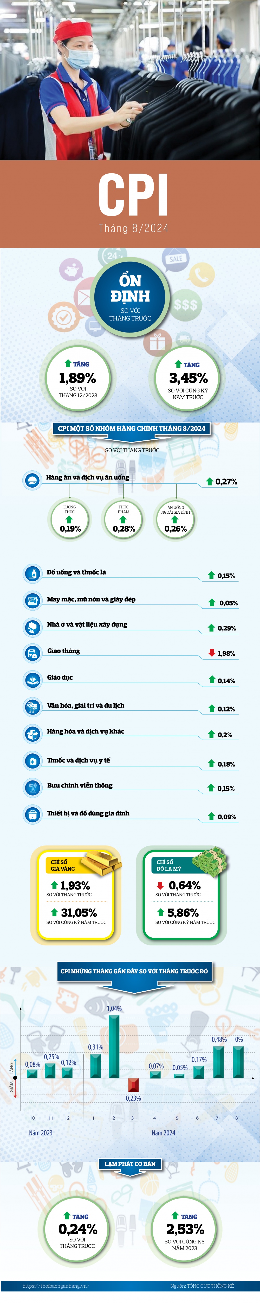 [Infographic] Chỉ số giá tiêu dùng tháng 8/2024