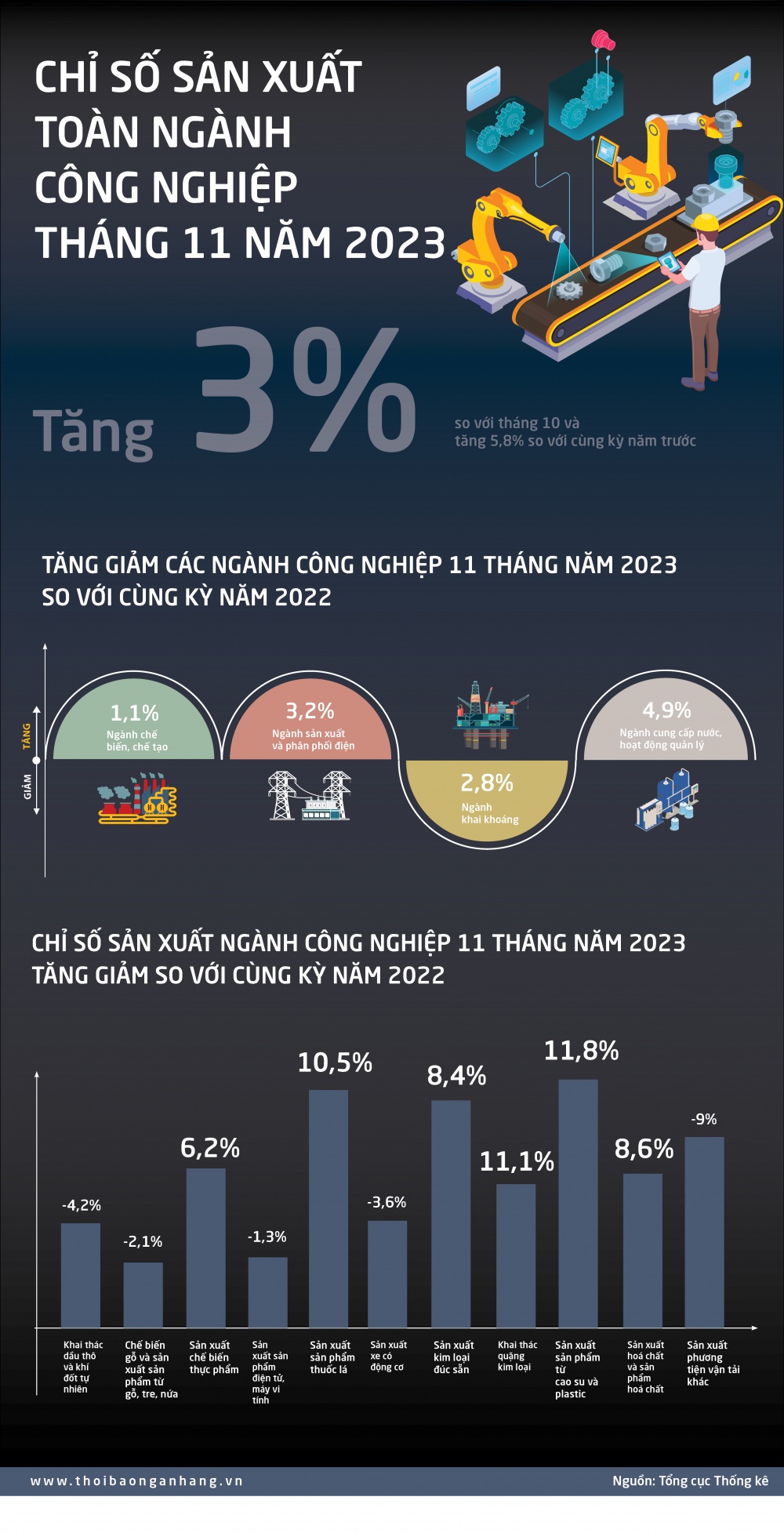 [Infographic] Chỉ số sản xuất công nghiệp 11 tháng năm 2023