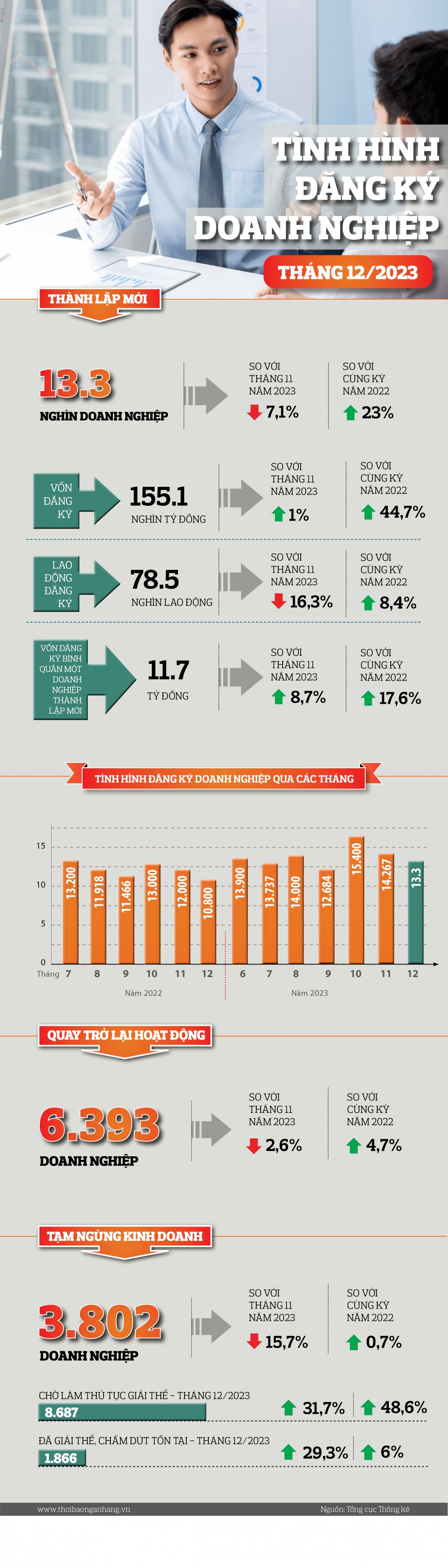 [Infographic] Đăng ký doanh nghiệp tháng 12/2023