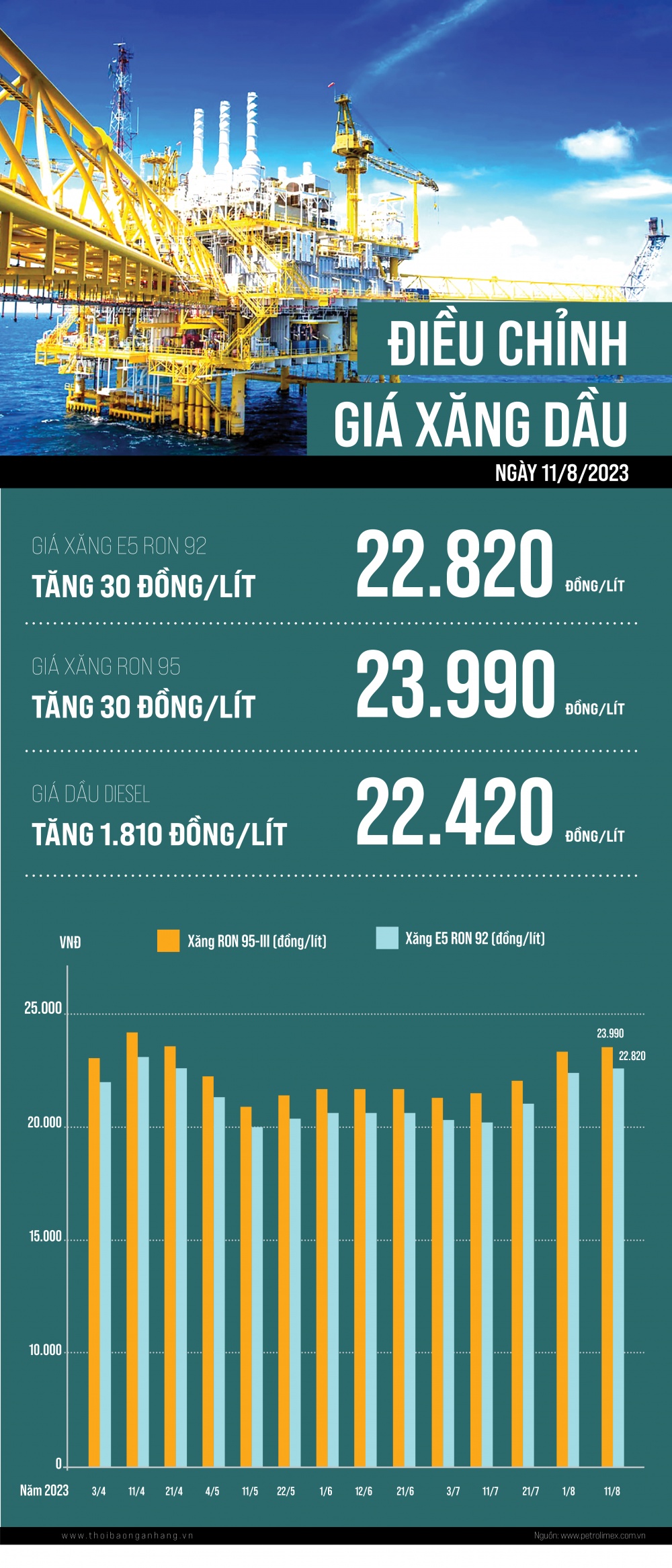 [Infographic] Giá xăng dầu lại tăng trong phiên điều hành ngày 11/8