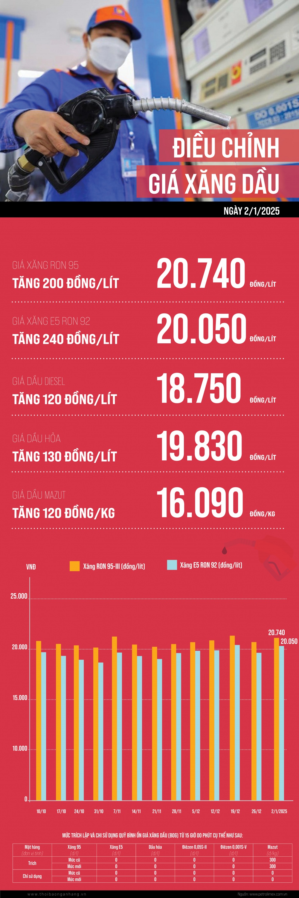 [Infographic] Giá xăng dầu tăng nhẹ đầu năm 2025