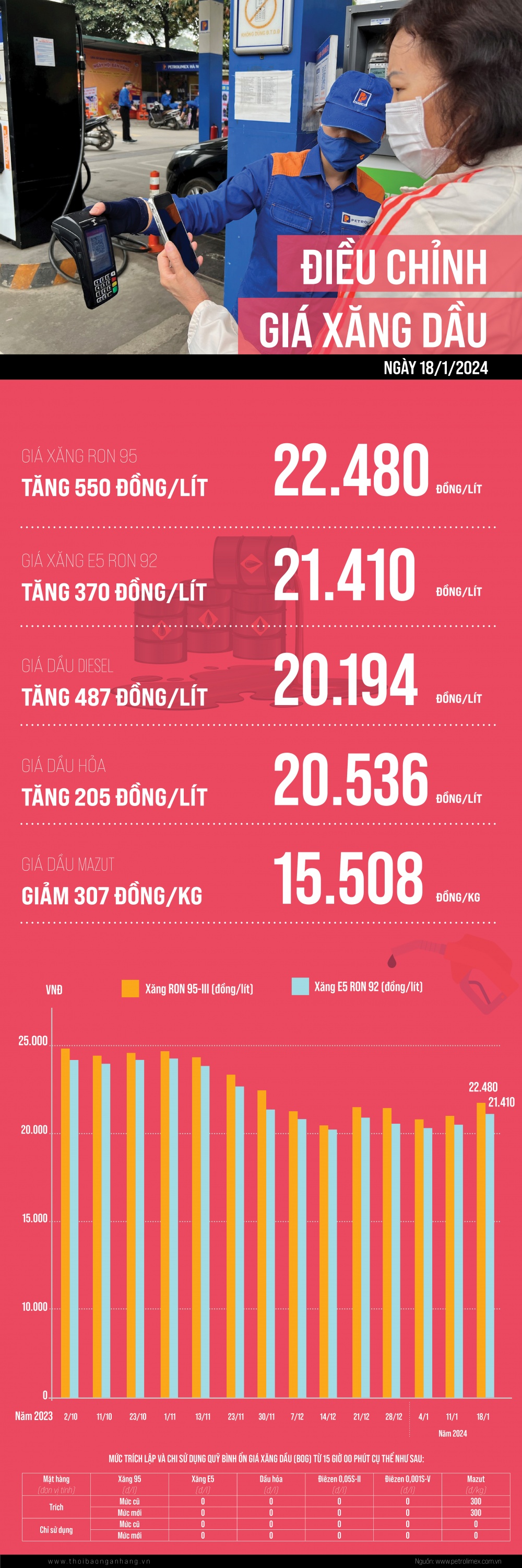 [Infographic] Giá xăng tiếp tục tăng trong kỳ điều hành 18/1