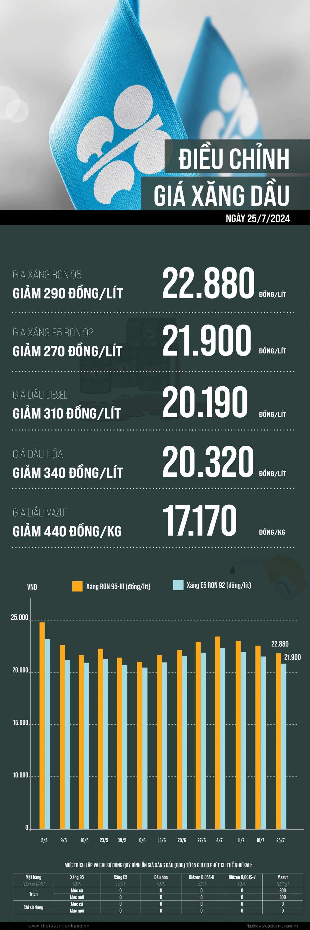 [Infographic] Giá xăng về dưới 23.000 đồng một lít trong kỳ điều hành 25/7