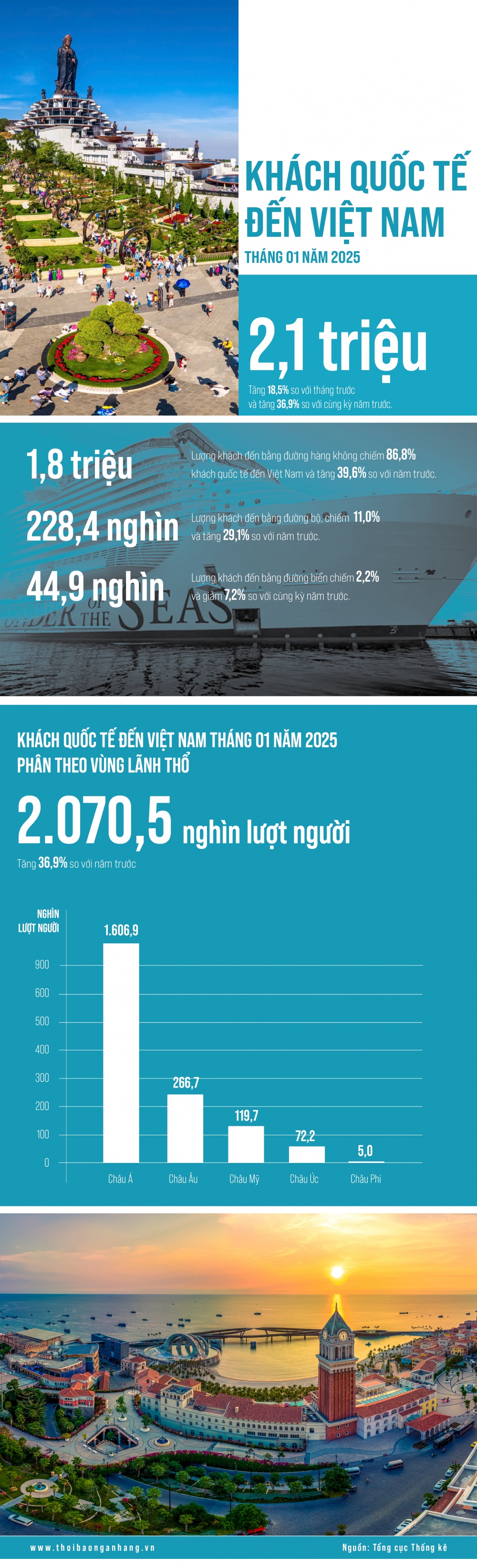 Chính sách thị thực thuận lợi, các chương trình quảng bá, xúc tiến du lịch được đẩy mạnh cùng với những giải thưởng thế giới danh giá về du lịch đã thu hút khách quốc tế đến Việt Nam tăng cao trong tháng đầu năm 2025.