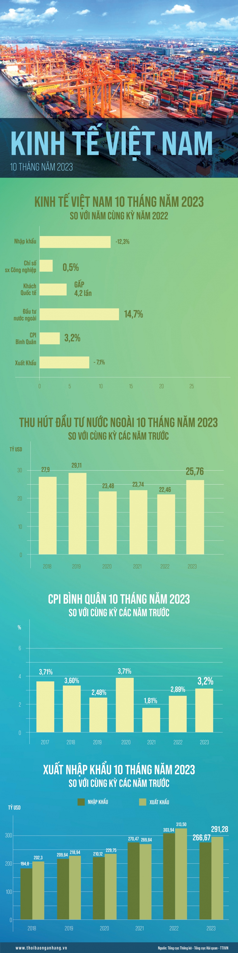 [Infographic] Kinh tế Việt Nam 10 tháng năm 2023